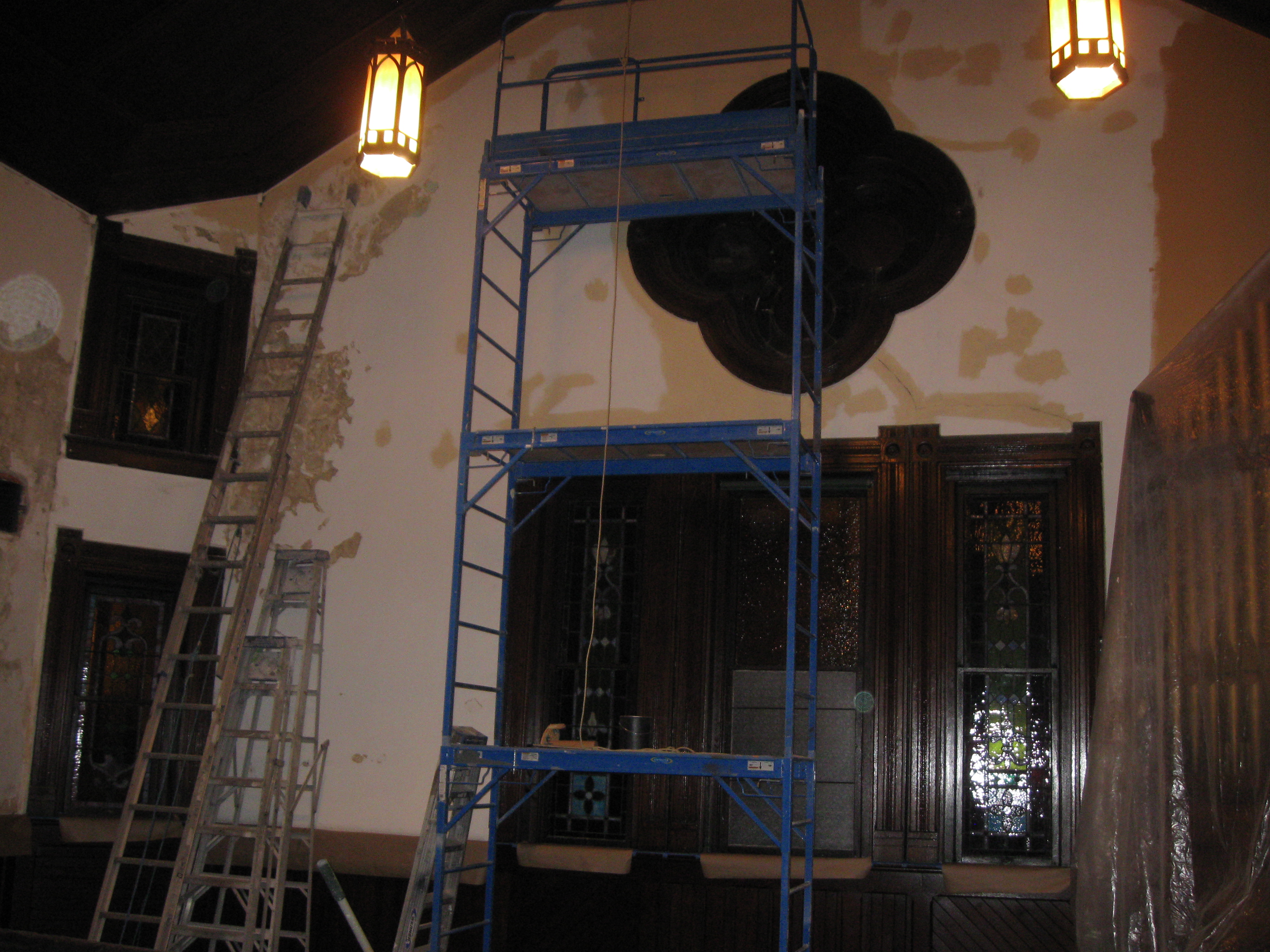 Painting and repair has progressed into the sanctuary.